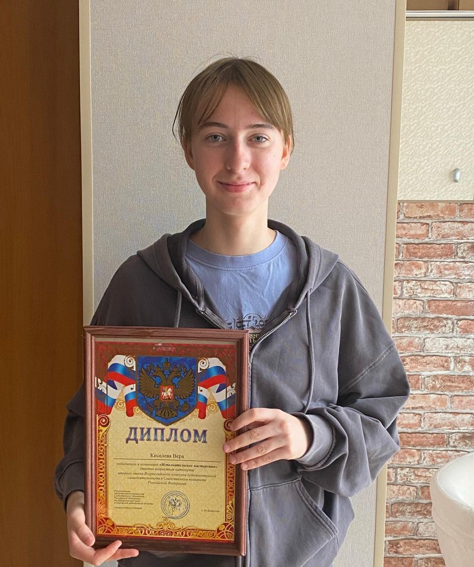 Победителем в номинации «Исполнительское мастерство» (третья возрастная категория) стала Вера Киселёва, дочь заведующего кафедрой уголовного права криминологии и уголовного процесса Хабаровского филиала Е.А. Киселёва, исполнившая «Вальс» А. О’Херна.