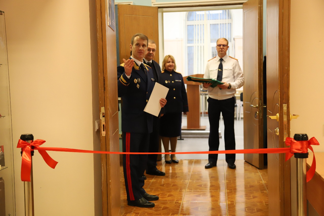 В торжественной обстановке заместитель Председателя Следственного комитета Российской Федерации А.В. Федоров вместе с И.А. Серовой, матерью ученого, открыли именную аудиторию, перерезав символическую ленту.