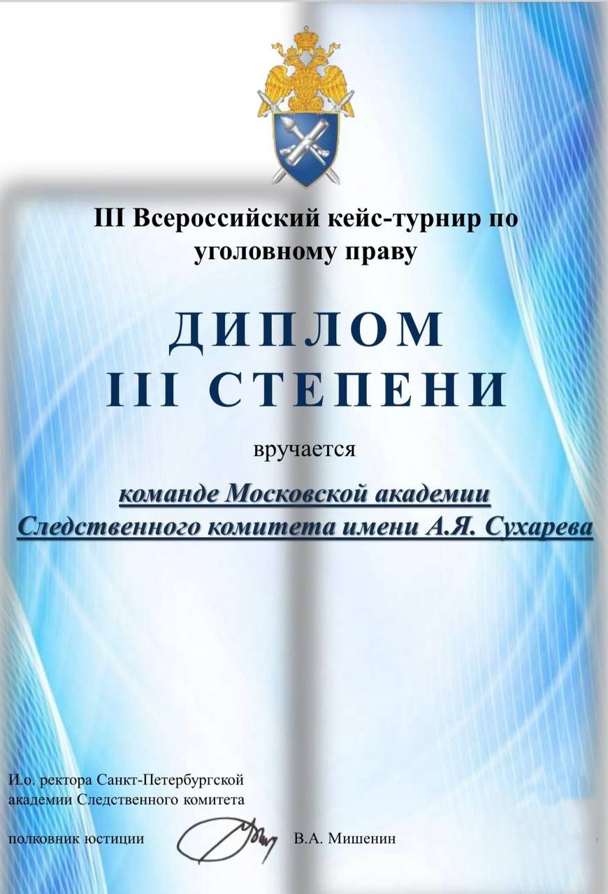 Курсанты Московской академии Следственного комитета имени А.Я. Сухарева стали призерами Всероссийского кейс-турнира по уголовному праву