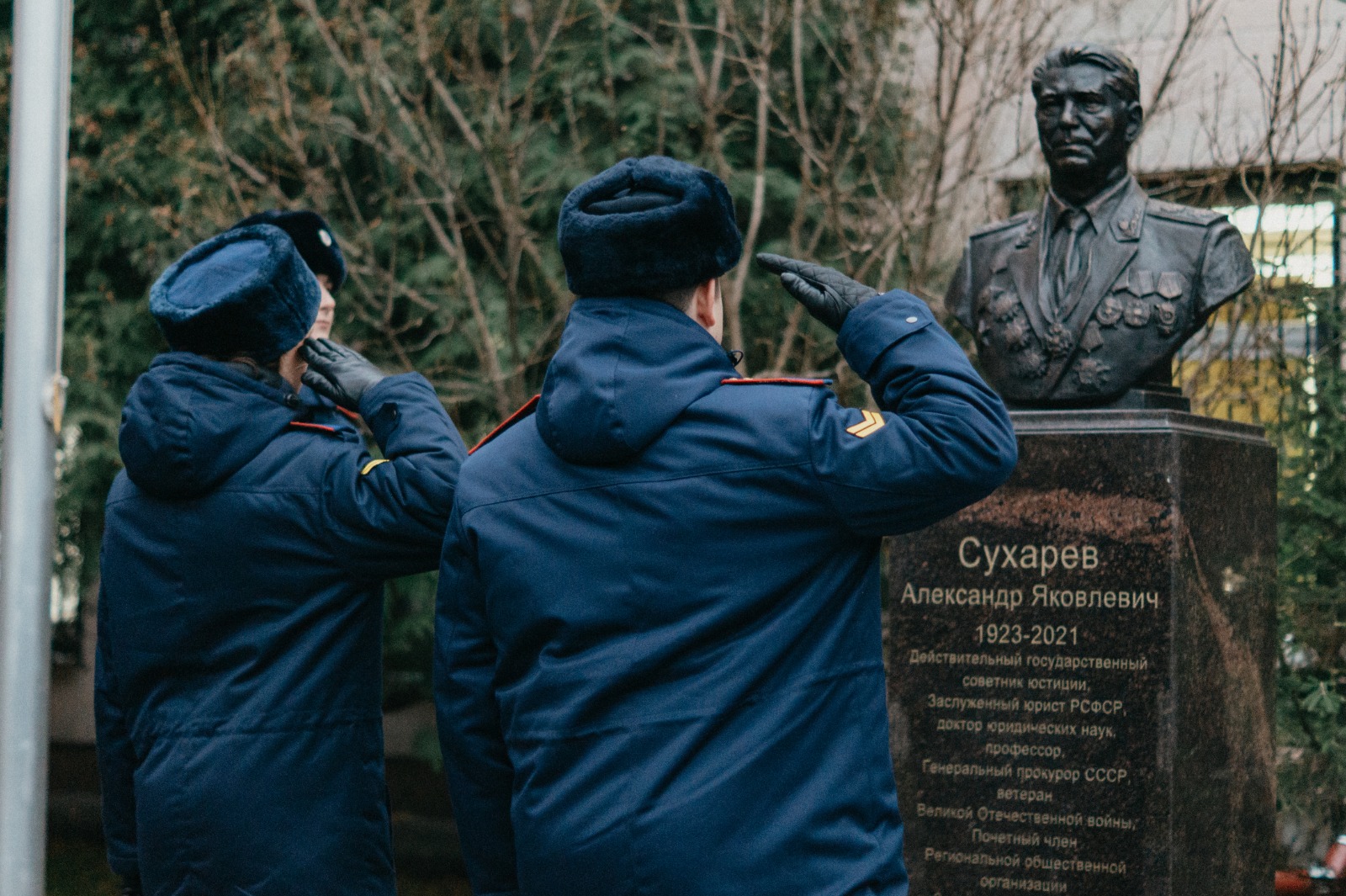 Мероприятие началось с возложения цветов к бюсту известного государственного деятеля Александра Яковлевича Сухарева, имя которого носит академия. Александр Яковлевич был президентом Межрегиональной общественной организации «Выдающиеся полководцы и флотоводцы Отечества» и инициатором памятных мероприятий, посвящённых великим отечественным военачальникам, целью которых является патриотическое воспитание молодежи, что так незаменимо в наше время. В церемонии приняли участие курсанты 2 курса факультета подготовки следователей. Право первыми возложить цветы было предоставлено курсантам Даниилу Шарыгину и Ольге Орловой, отлично проявившим себя в учебной и общественной деятельности.
