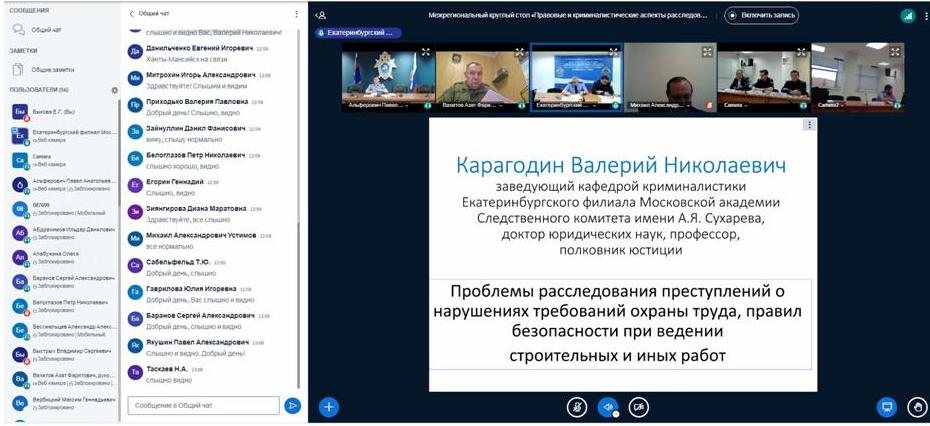 В Екатеринбургском филиале состоялся круглый стол, посвященный расследованию уголовных дел о нарушениях требований охраны труда, правил безопасности при ведении строительных и иных работ