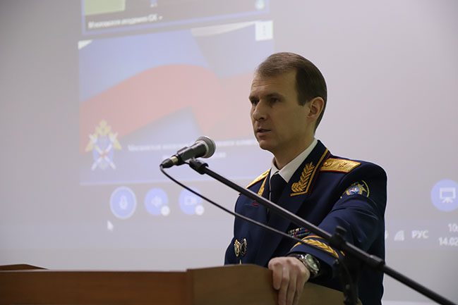 От имени руководства присутствующих приветствовал ректор Московской академии Следственного комитета Алексей Александрович Бессонов, который рассказал об академии, её традициях, правилах и особенностях образовательного процесса.