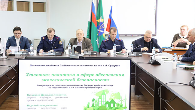В диссертационном совете 77.2.001.01 Московской академии Следственного комитета имени А.Я. Сухарева доцент кафедры уголовного права и криминологии Наталья Ивановна Кузнецова защитила диссертацию на тему «Уголовная политика в сфере обеспечения экологической безопасности», представленную на соискание учёной степени доктора юридических наук по специальности 5.1.4. Уголовно-правовые науки.