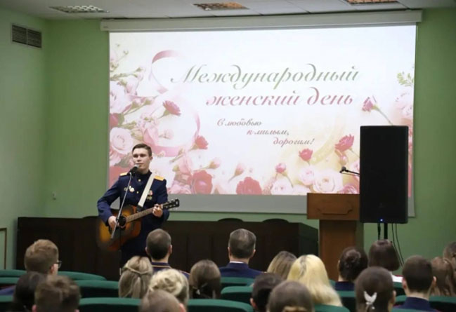 Концертная программа, подготовленная курсантами Московской академии Следственного комитета имени А.Я. Сухарева совместно с Культурным центром Следственного комитета Российской Федерации, подарила зрителям яркие творческие номера. Со сцены звучали лирические песни с весенними мотивами, проникновенное стихотворение «Ах, женщины» в исполнении курсанта академии Алексея Спицина. Особую атмосферу создал танец «Эхо любви» в исполнении Сергея Рыбака и Александры Карнауховой. Завершил концерт квартет курсантов с песней «Любите, девушки».