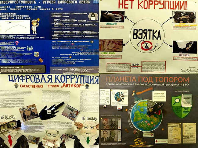 В творческом конкурсе активное участие приняли курсанты 3-4 курсов. Конкурсные работы были посвящены исследованию феномена коррупции: авторы проанализировали ее причины, исторические корни, разрушительные последствия для общества, а также развеяли популярные мифы. Особый интерес вызвали стенгазеты, в которых рассматривались актуальные направления: цифровая коррупция и экологическая коррупция. Кроме того, участники провели сравнительный анализ этого явления в различных странах мира.