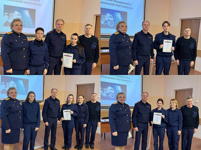 Дипломы победителям вручили декан факультета подготовки следователей А.Ю. Сафонов, заведующий кафедрой уголовного права и криминологии А.Л. Иванов и доцент кафедры Н.И. Кузнецова.