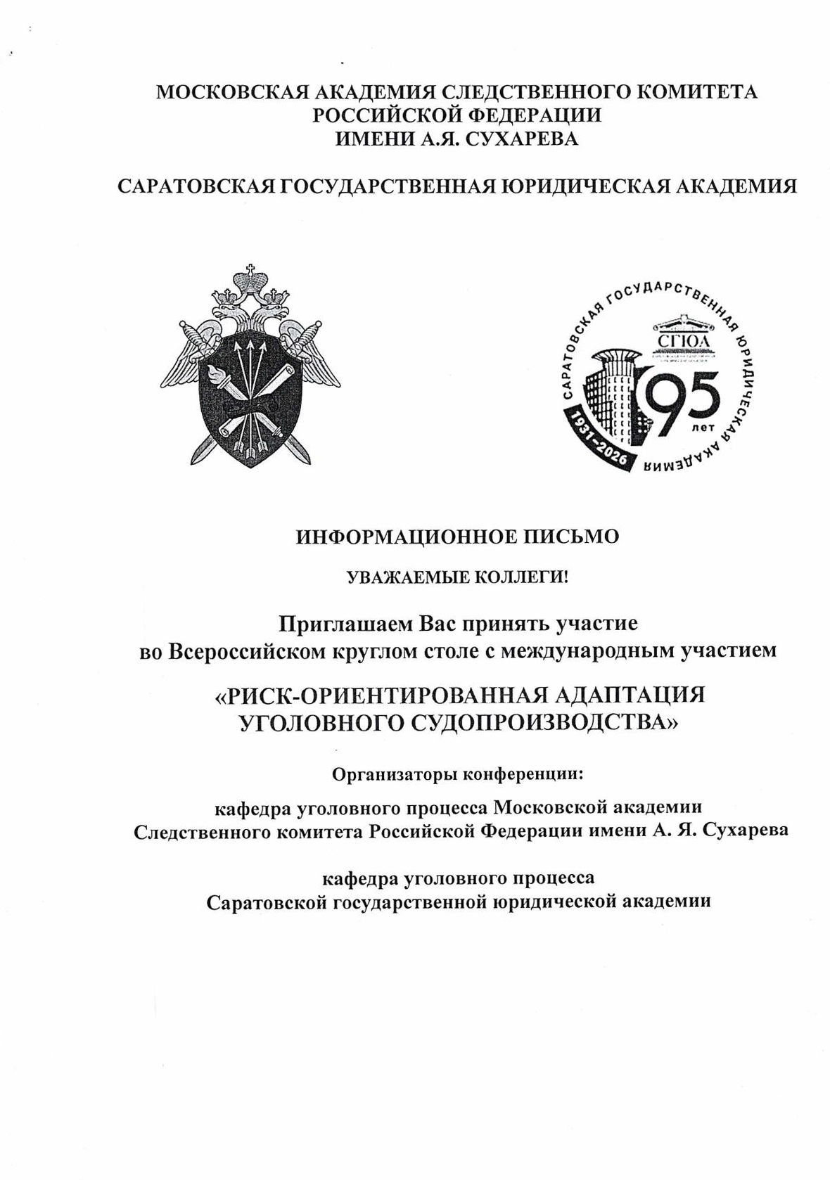 Всероссийский круглый стол «РИСК-ОРИЕНТИРОВАННАЯ АДАПТАЦИЯ УГОЛОВНОГО СУДОПРОИЗВОДСТВА»