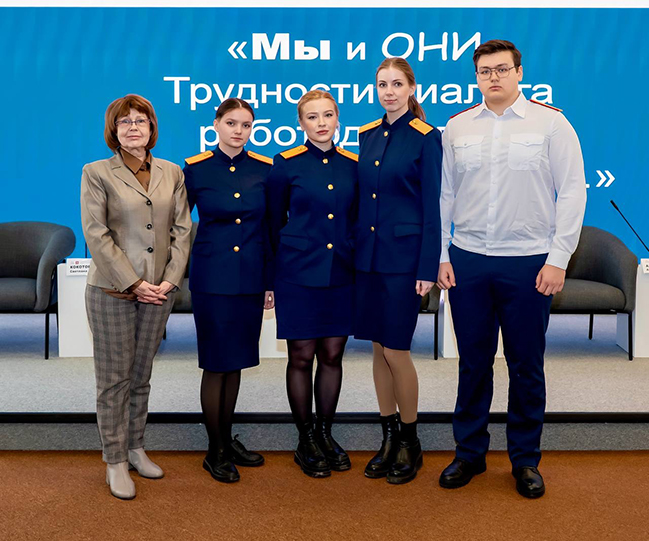 Московскую академию Следственного комитета имени А.Я. Сухарева представляли доцент кафедры гражданско-правовых дисциплин Марина Анатольевна Моисеенко, выступившая с докладом на тему «Роль руководителя в стратегии развития бизнеса», и курсант 4 курса факультета подготовки следователей Кирилл Смирнов, представивший доклад на тему «Правовые аспекты целевого обучения». Курсанты академии Варвара Анисимова, Мария Попель и Екатерина Сухарева приняли участие в научной дискуссии.