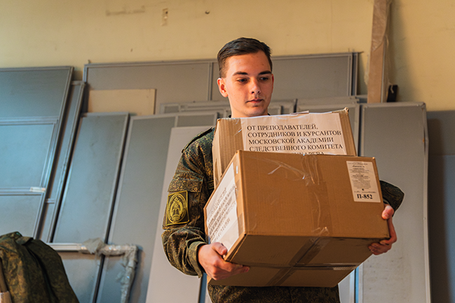 Курсанты и преподаватели Московской академии Следственного комитета имени А.Я. Сухарева передали в зону проведения специальной военной операции гуманитарную помощь для дальнейшей отправки участникам специальной военной операции. Помимо гуманитарного груза, в зону СВО отправятся 200 м2 маскировочных сетей, изготовленных силами курсантов в рамках акции «Вяжем-Нашим.РФ».