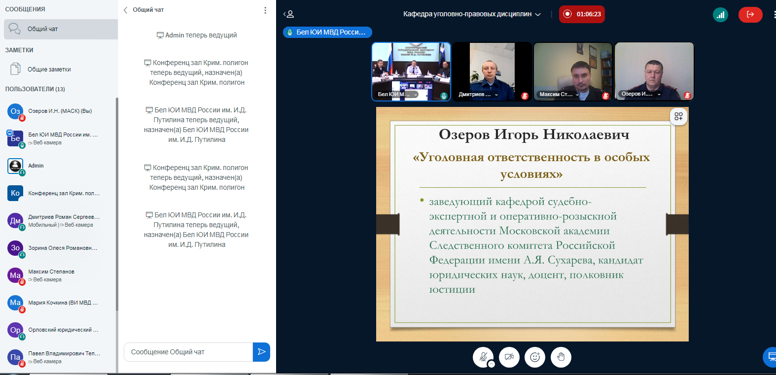 На базе Белгородского юридического института МВД России имени И.Д. Путилина состоялась Всероссийская научно-практическая конференция на тему «Уголовное право и криминология: проблемы и направления развития». Мероприятие прошло в смешанном формате с использованием видео-конференц-связи и объединило представителей научного сообщества и практических подразделений правоохранительных органов.