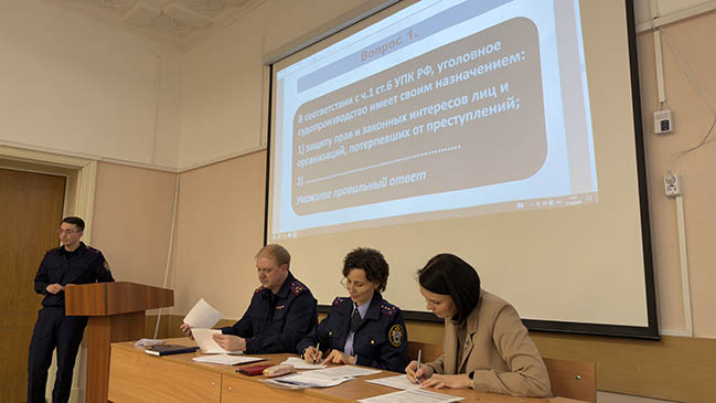 Первый этап включал в себя блок вопросов, посвящённых истории становления и развития следственных органов в Российской Федерации. Участники показали глубокое понимание историко-правовых процессов и уверенное владение теоретическим материалом.